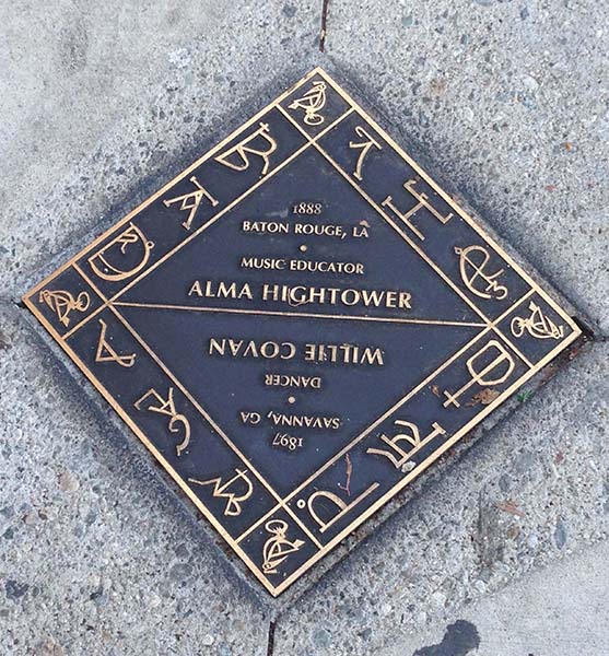There are plaques on sidewalks that pays homage to important African-Americans. Alma Hightower, a vocalist, musician and music teacher, and Willie Covan, a legendary actor and tap dancer who taught Hollywood stars to tap dance. For example, the late Shirley Temple Black.
